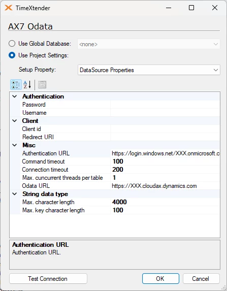 - Right-click the adapter, click Source Providers, and click Add AX7 Odata Provider. The AX7 Odata window appears.