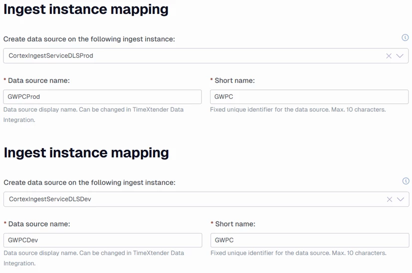 Map the data source to an Ingest instance by selecting an instance, and providing the data source name and short name to be used in TimeXtender Data Integration