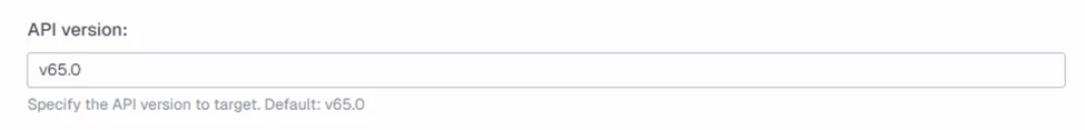 Specify the API version to connect to. The default v65.0 is the latest version at the time of development.