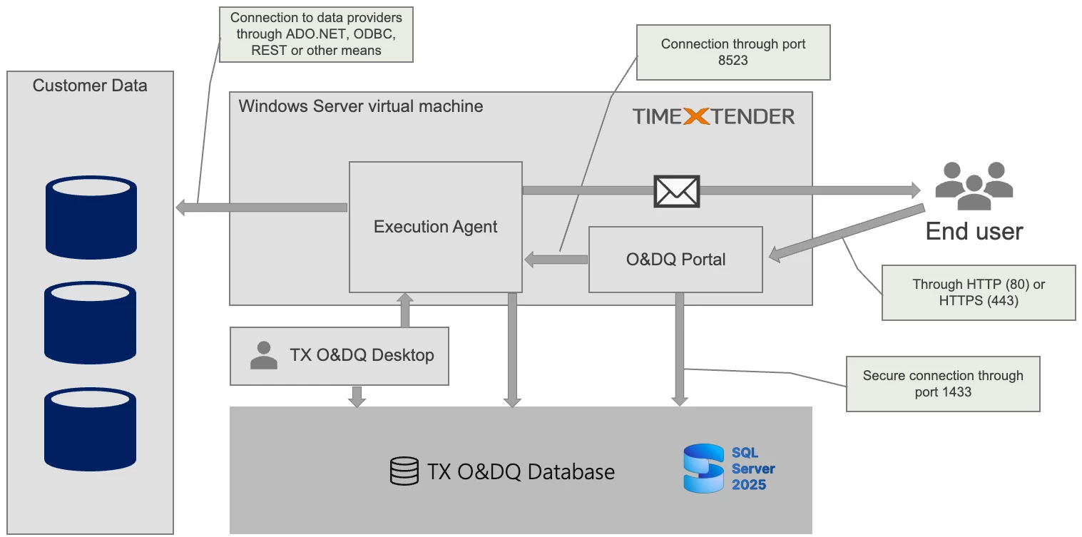 For organizations requiring data to remain within their own data center due to regulatory, security, or compliance reasons, the on-premises deployment option is the best fit. This method involves installing and running the O&DQ solutions on local servers and infrastructure.