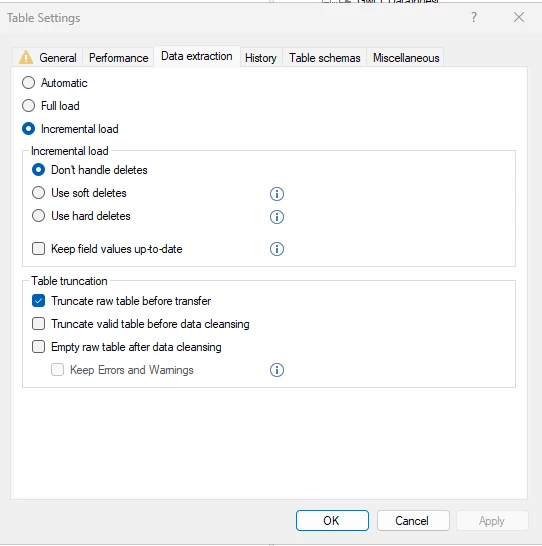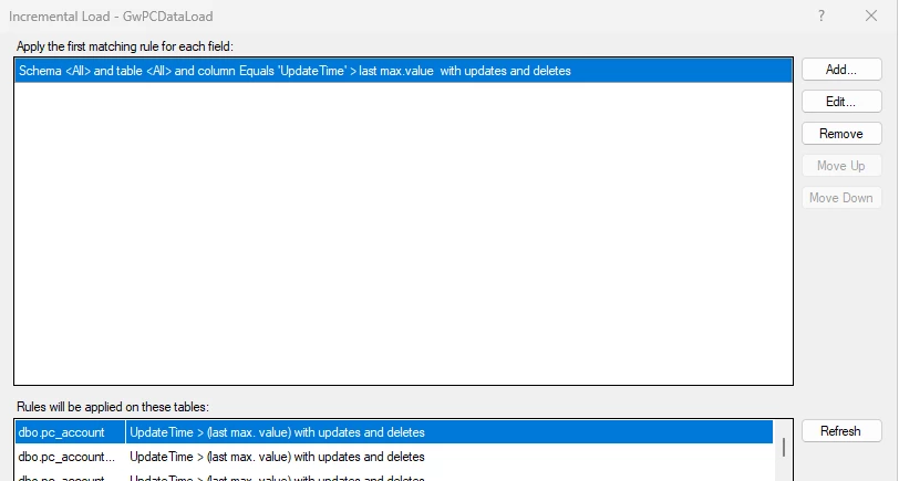 Them in my Prepear area, I set on the tables incremental load.