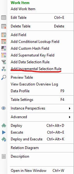 To finish I set add Incremental Selection Rule