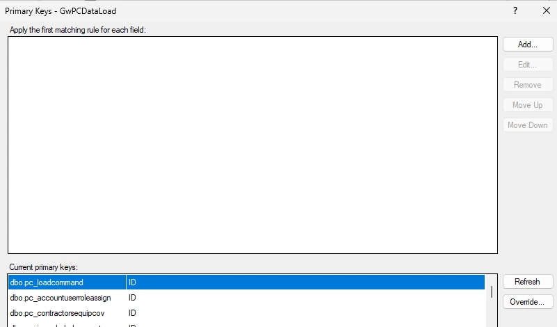 First I set up the PK on ingest area.