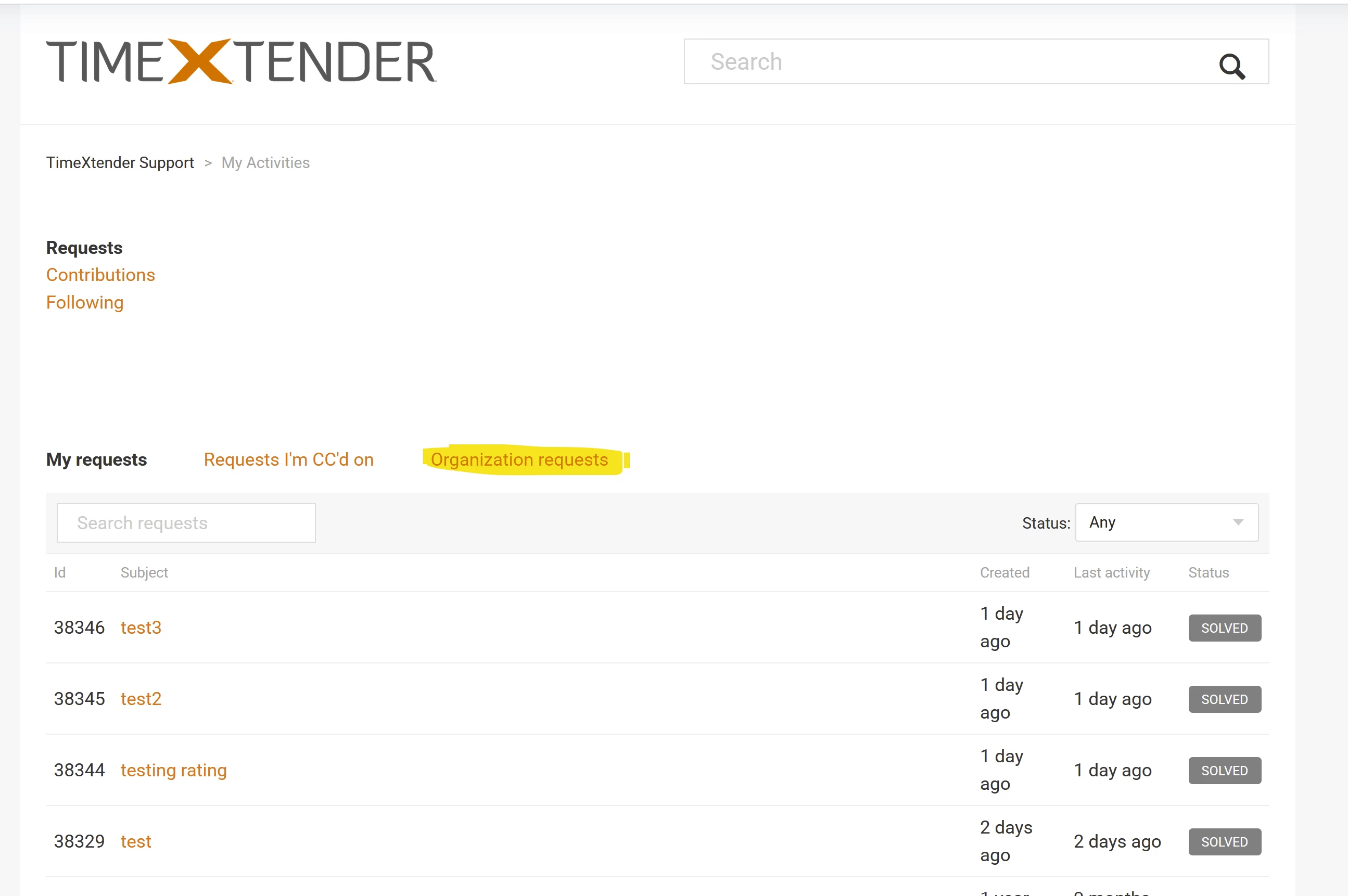It should be possible to view the requests/tickets here https://legacysupport.timextender.com/hc/en-us/requests