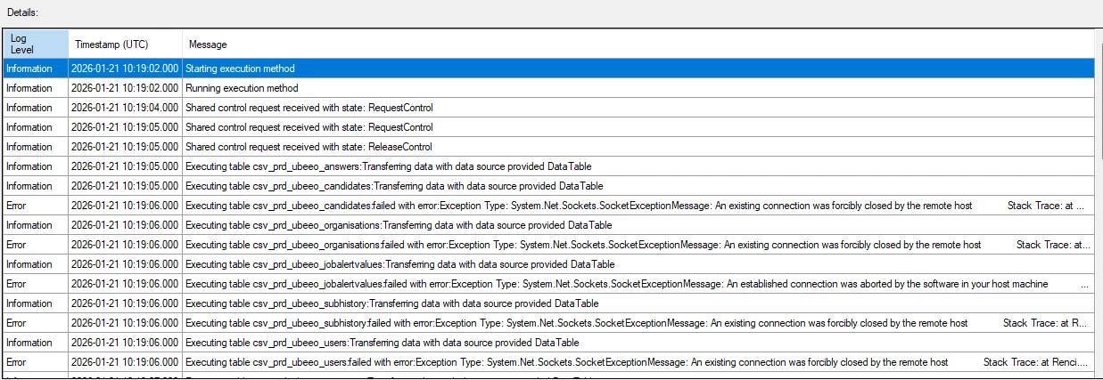 I use TimeXtender CSV Data Source (version 23.18.5.0). I'm trying to read about 15 csv's from an sftp server, but since january 15th 2026 we get an error. This server is hosted by an external supplier which has it's settings limited to max 1 session (no concurrent sessions).