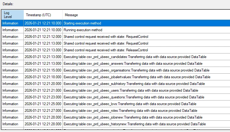 After this the supplier increased it's max threads temporarily for testing purposes. I configured the connector on 1 thread again. If I look in the log, I can see that the first 2 tables start on the same timestamp. This occurs a couple of times more. Is the connector using 2 threads now?