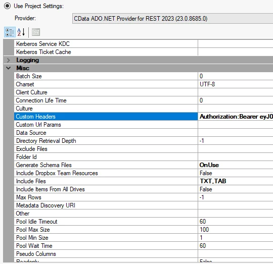 Conection requires that i send a bearer token.