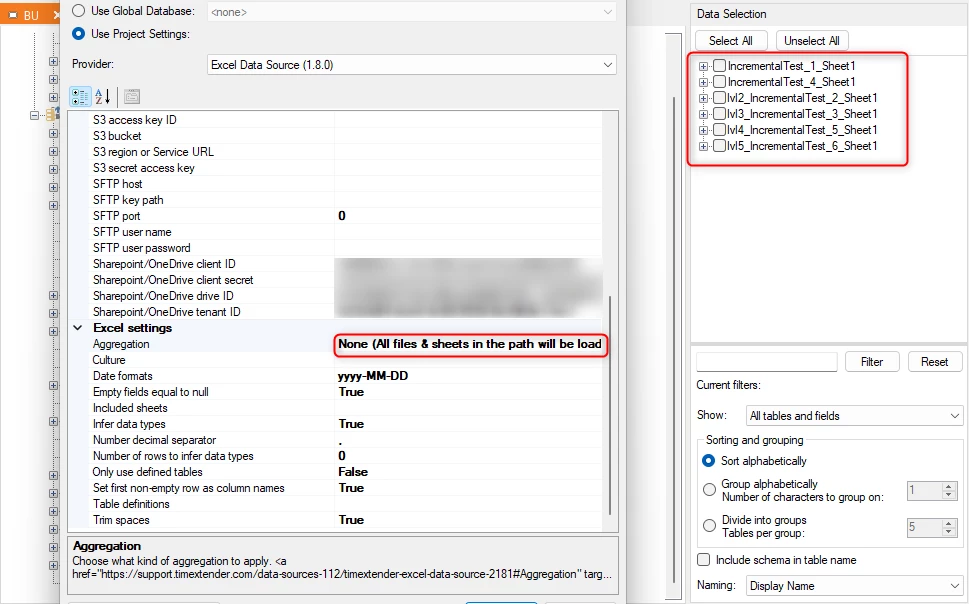 i've setup a connection to the folder using provider TimeXtender Excel Data Source (16.4.20.0) and can see the files when i choose None for the aggragation option.