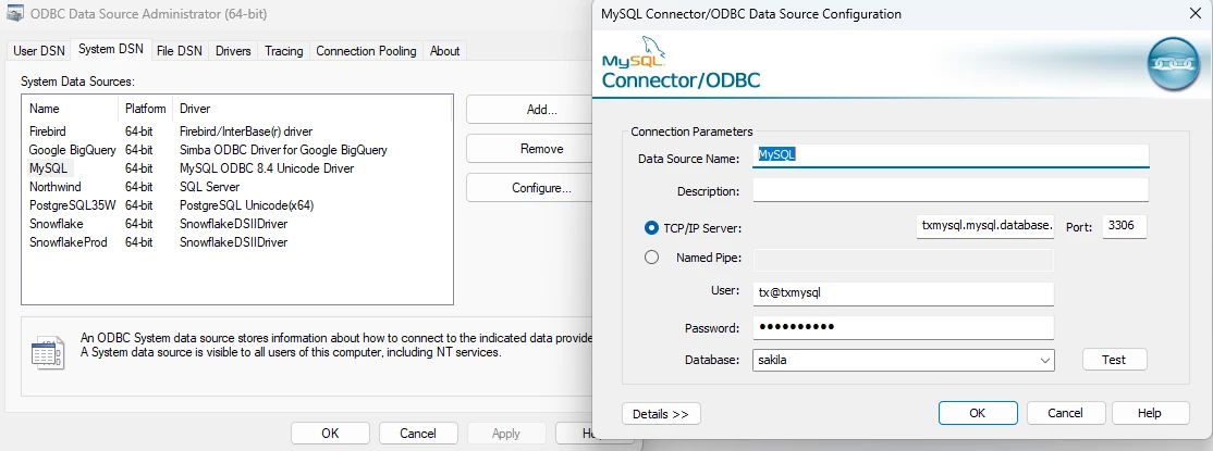 - It works just fine in ODBC Data Source Administrator