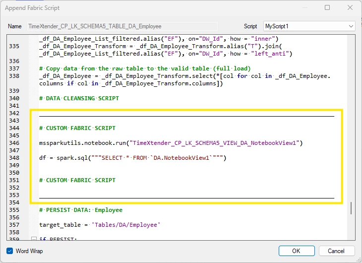 To integrate notebook views into larger workflows, add scripts to deployment notebooks that reference your views. See Customize code on Fabric Lakehouse for more information.