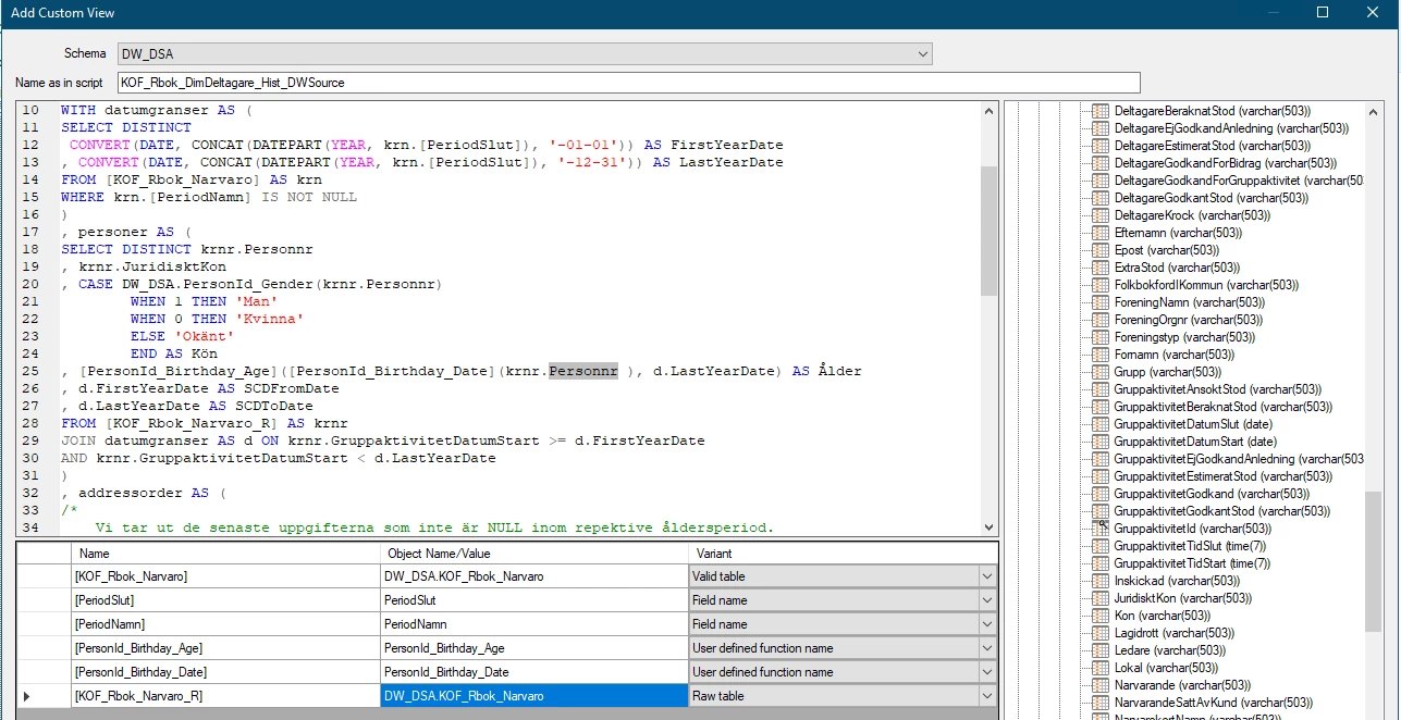 Raw-only fields will not be displayed in other Data Areas or Deliver instances that only use the valid part of the table. Hiding a field from the valid version of a table can be appropriate for fields that have no other purpose than to be part of other fields, e.g., used to create a surrogate key for dimensional modeling.