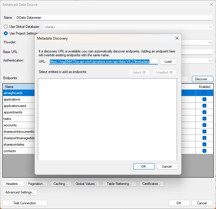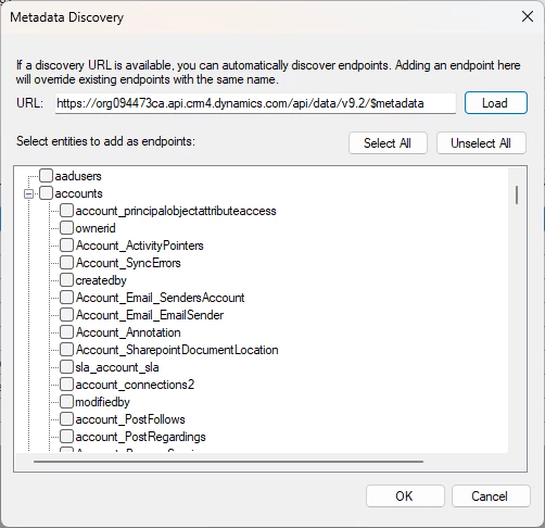 It will show the same sort of list of tables and specific fields that you can check. If you select a field it will generate it as a $select parameter, but you do not have to check them to add the table.