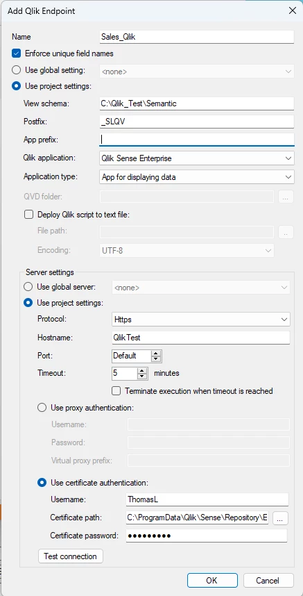 Below is the completed setup of Semantic Model Qlik endpoint.