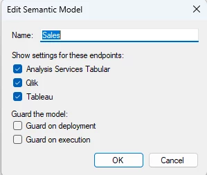 In the Edit Semantic Model dialog, check the Qlik endpoint to enable it, if necessary.