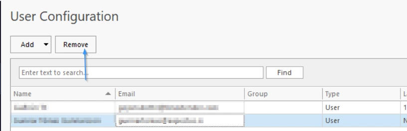 To remove a user, select them, click Remove, then Save