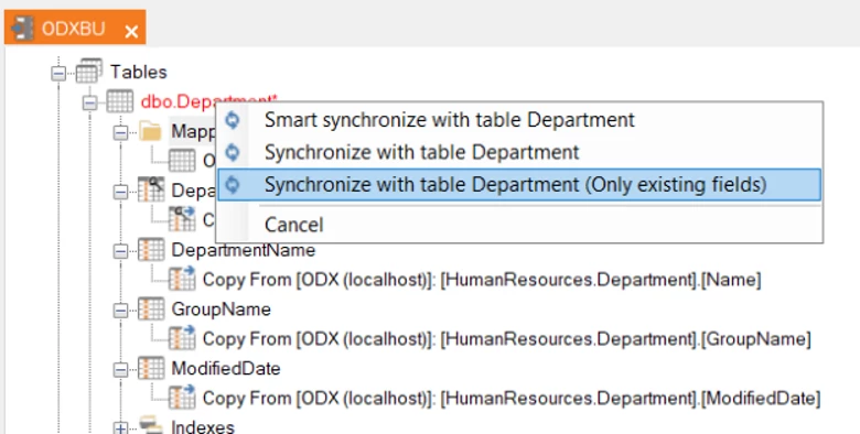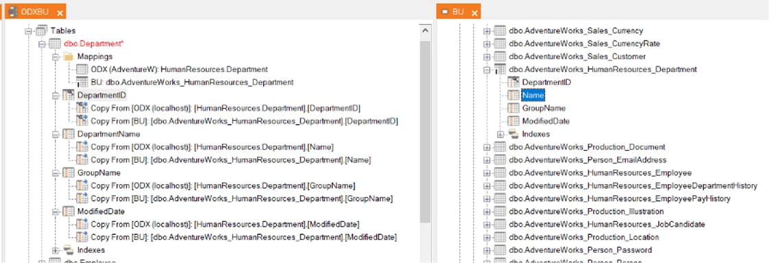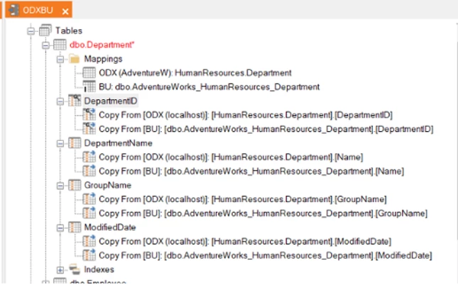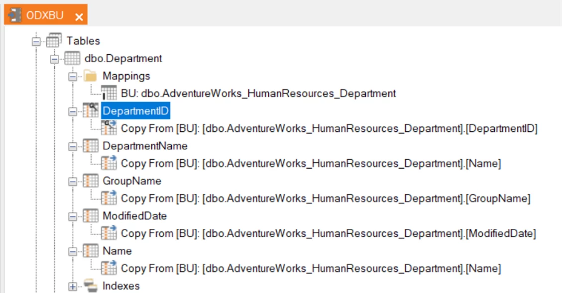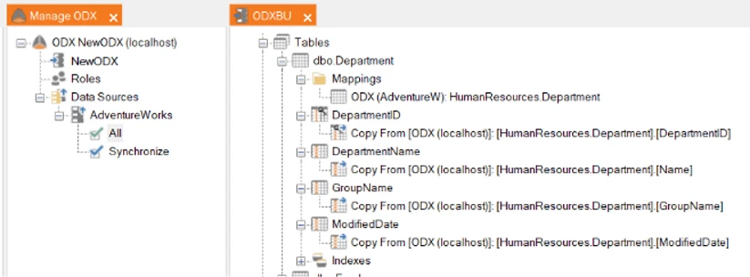 This is the starting point. Tables are mapped to the ODX.