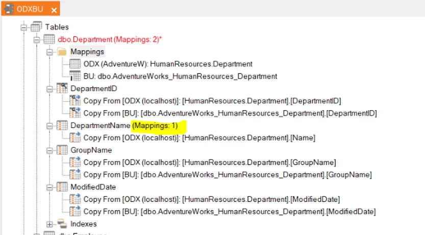 The remapping is done and the ODX table can be removed from Mappings
