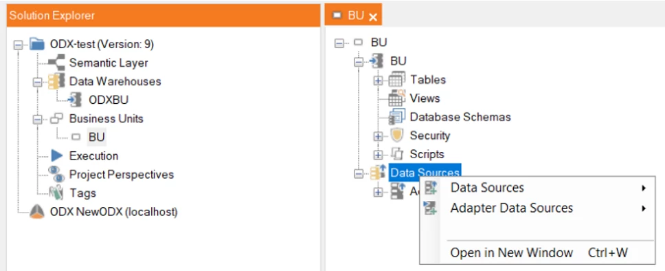 To create a Data Source, right-click on the created BU.